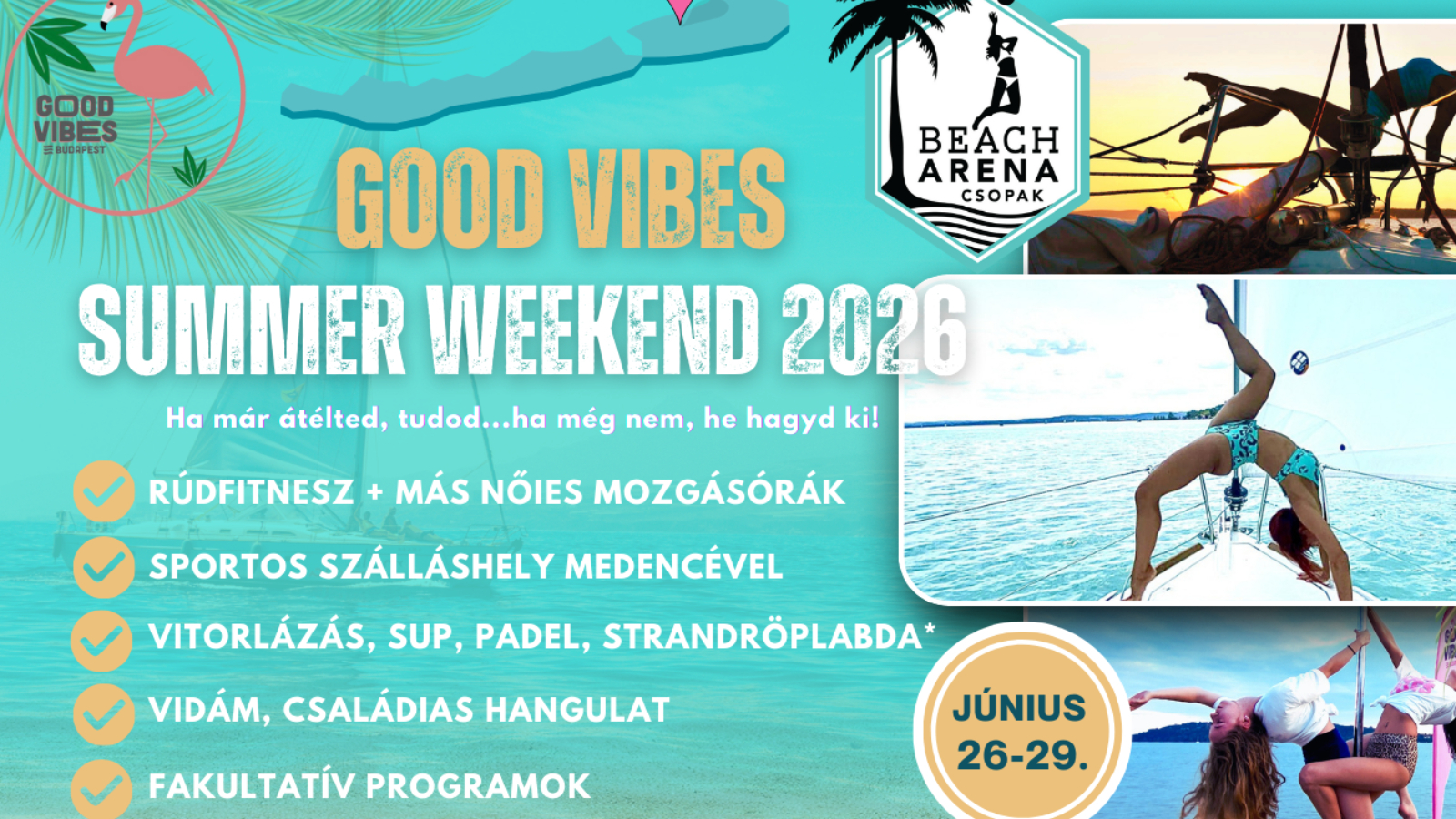 Tarts velünk a GoodVibes Summer Weekend eseményen 2026. június 26-29. között, amelynek idén ismét a fantasztikus Beach Arena Csopak ad otthont.